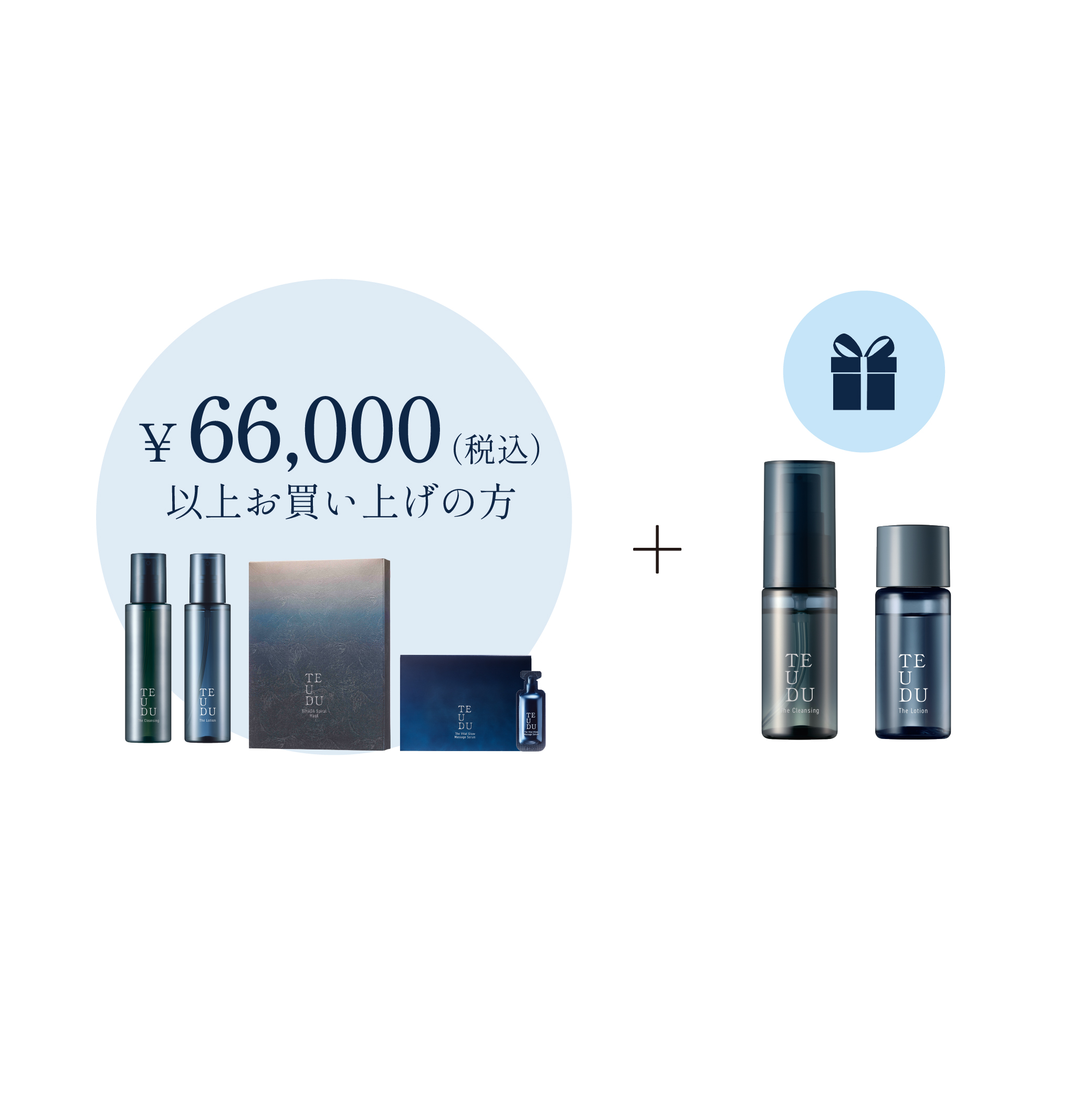 POPUP開催期間中、66,000円(税込)以上をお買い上げ(「iP・セル・リッチエマルジョン」を除く)のお客様へ、テウズのベーシックケアアイテム「ザ・クレンジング・ミニ」と「ザ・ローション・ミニ」をプレゼントいたします。