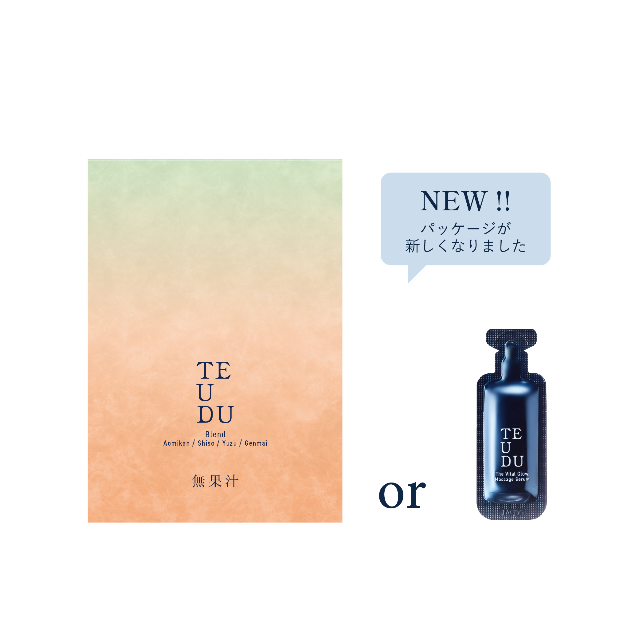 【ご購入特典】オリジナルインナーケアドリンク「TEUDU BLEND(非売品)」、または「ザ・バイタルグロー・マッサージセラム」1包をプレゼント